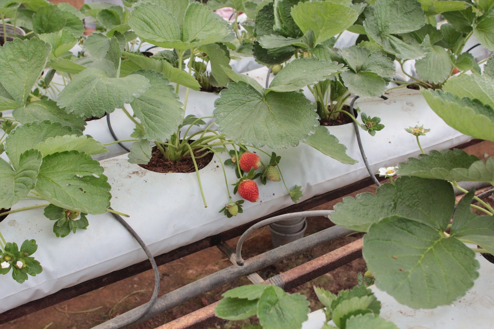 Unfortunately their strawberry farm is pathetically cleaned out with hardly able to see any strawberries left. This is the only few that I can see. I bet they are sourish. |